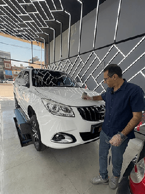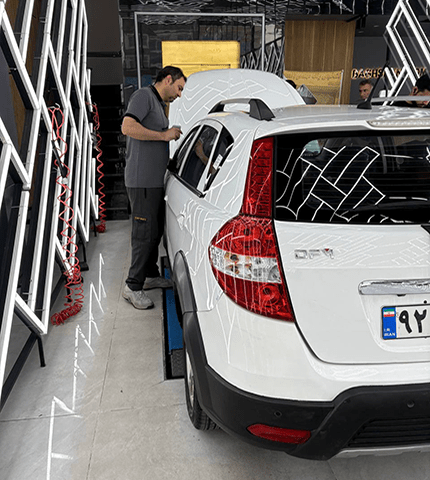 بعد از تشخیص رنگ شدگی خودرو به بررسی قطعات تعویضی خودرو از قبیل : دربها، گلگیرها،کاپوت ، سقف و …